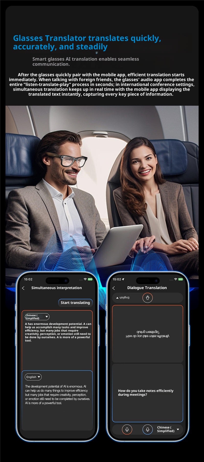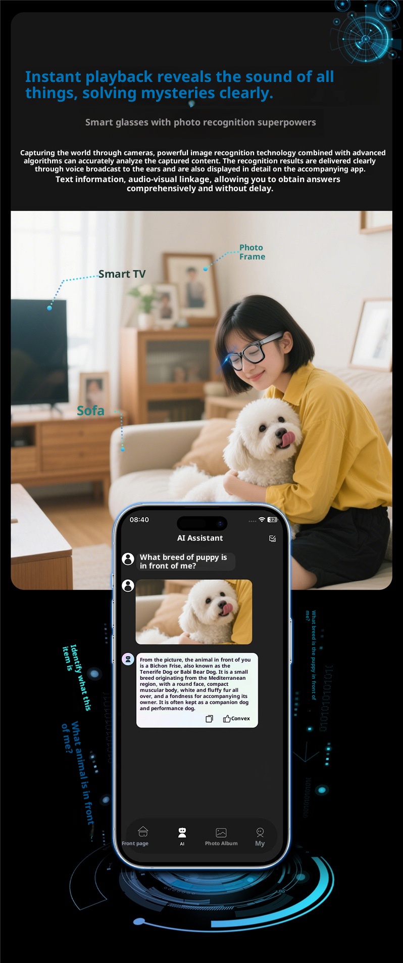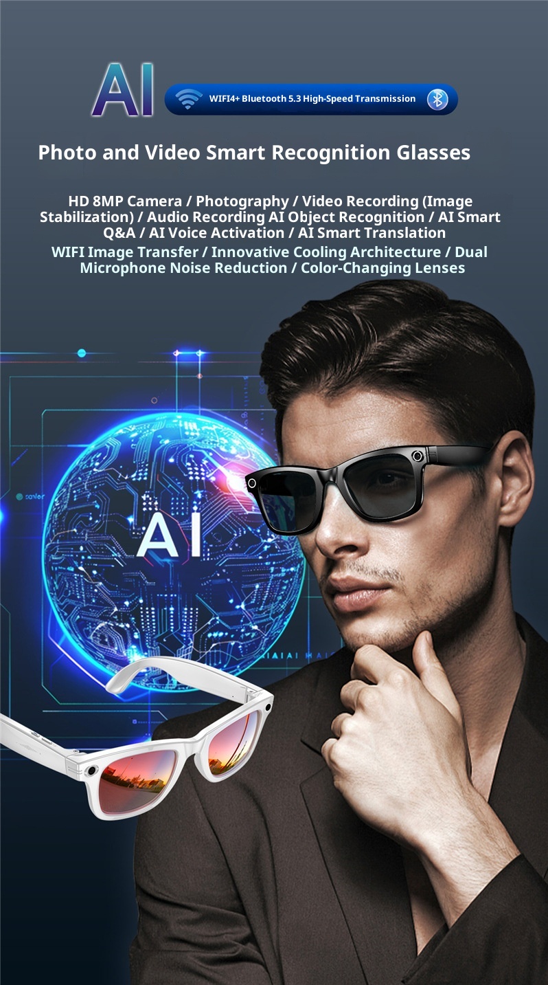 AI Recognition Voice Assistant Translation 800w Camera W610 Smart Glasses